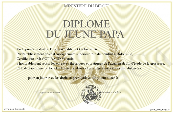 Envoyez par email votre Diplôme du jeune papa personalisé