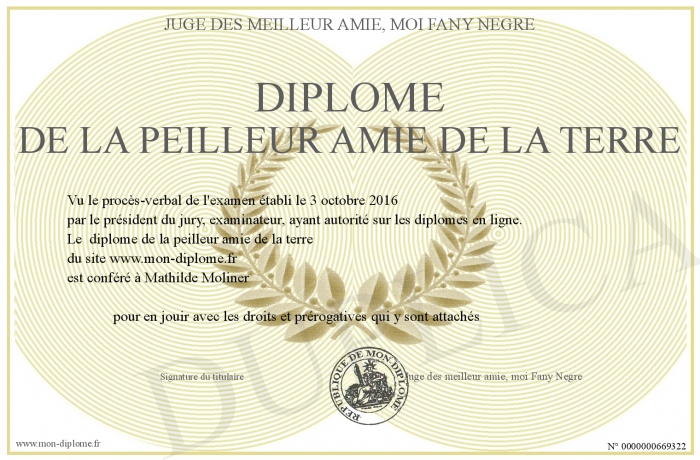 Envoyez par email votre diplome de la peilleur amie de la terre personalisé