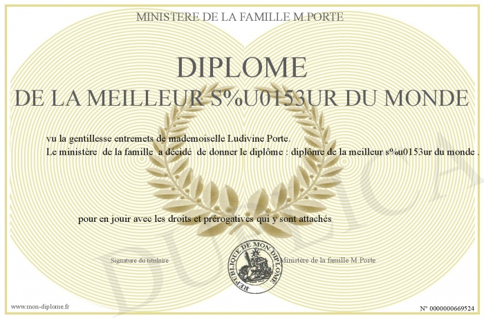 Envoyez par email votre Diplôme de la meilleur soeur du monde personalisé