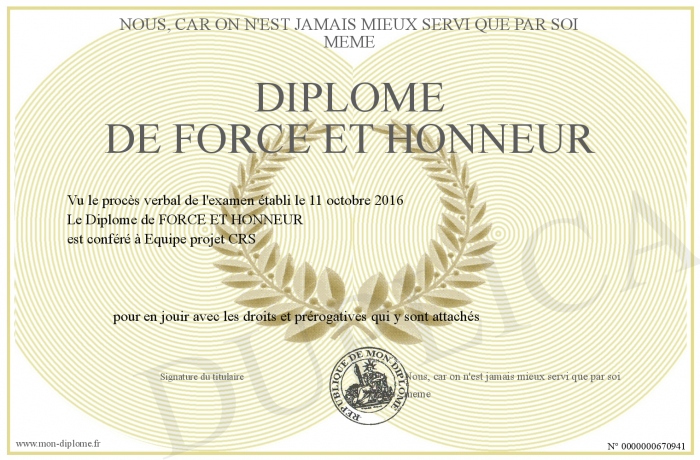 Envoyez par email votre Diplôme de FORCE ET HONNEUR personalisé