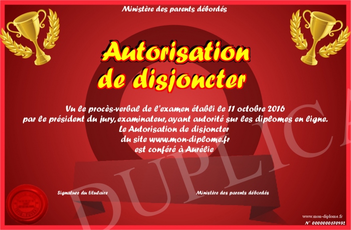 Envoyez par email votre Autorisation de disjoncter personalisé