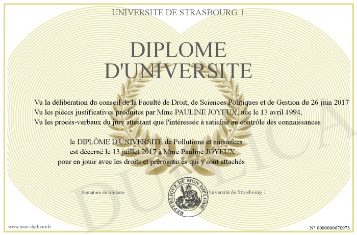 Envoyez par email votre Diplôme d'université personalisé