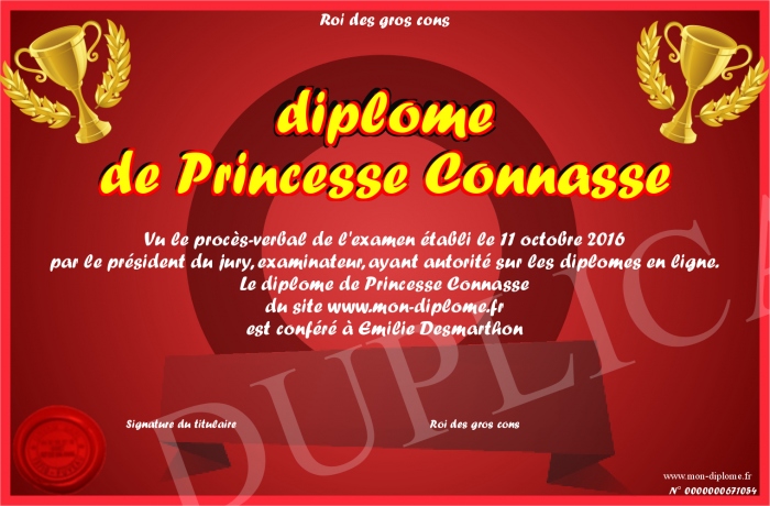 Envoyez par email votre diplôme de Princesse Connasse personalisé