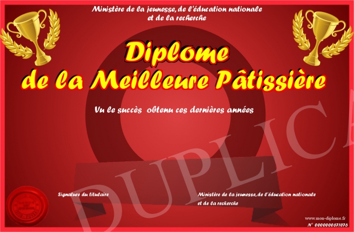 Envoyez par email votre Diplôme de la Meilleure Pâtissière personalisé
