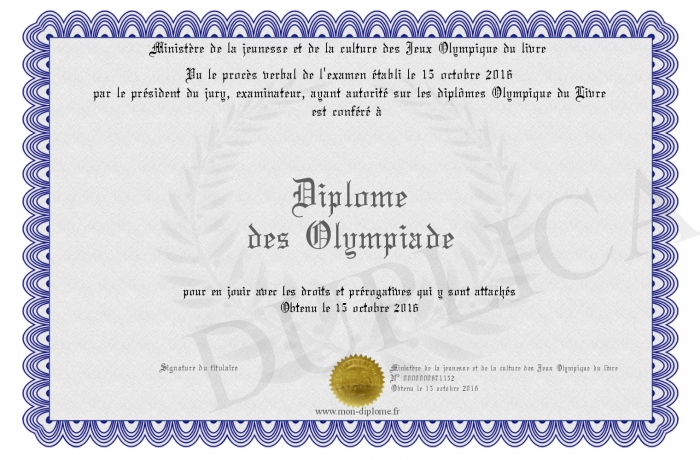Envoyez par email votre Diplôme des Olympiade personalisé