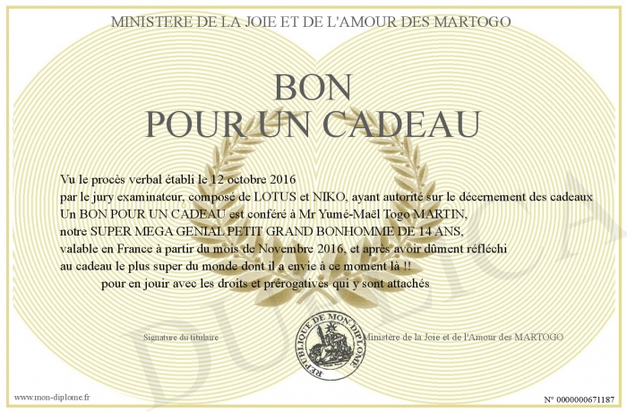 Envoyez par email votre BON POUR UN CADEAU personalisé