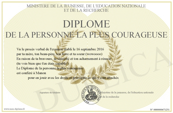 Envoyez par email votre Diplôme de la personne la plus courageuse personalisé