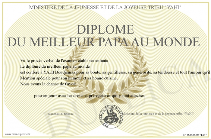 Envoyez par email votre Diplôme du meilleur papa au monde personalisé