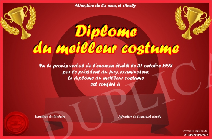 Envoyez par email votre Diplôme du meilleur costume personalisé
