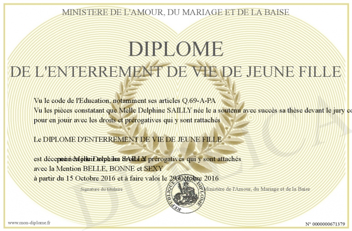 Envoyez par email votre Diplôme de l'Enterrement de Vie de Jeune Fille personalisé