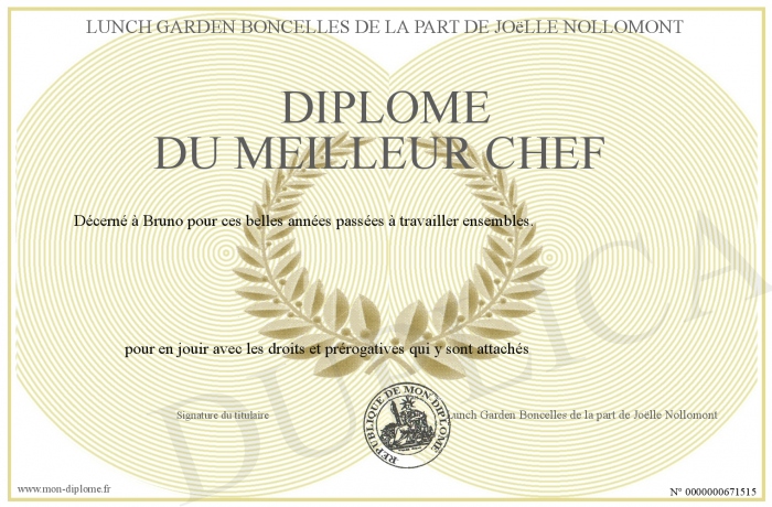 Envoyez par email votre Diplôme du meilleur Chef personalisé