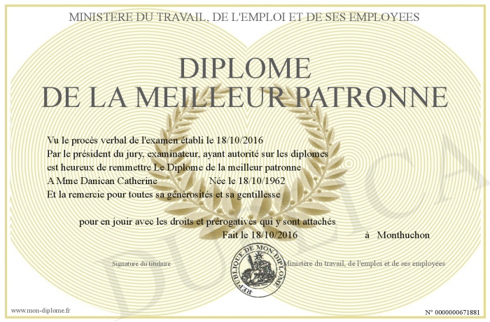 Envoyez par email votre Diplôme de la meilleur patronne personalisé