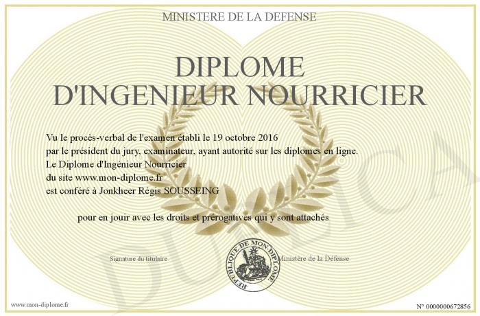 Envoyez par email votre Diplôme d'Ingénieur Nourricier personalisé