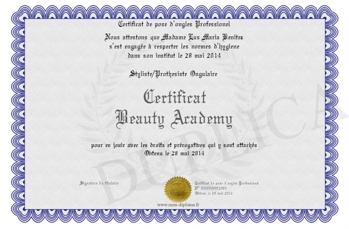 Envoyez par email votre Certificat Beauty Academy personalisé