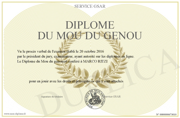 Envoyez par email votre Diplôme du Mou du genou personalisé