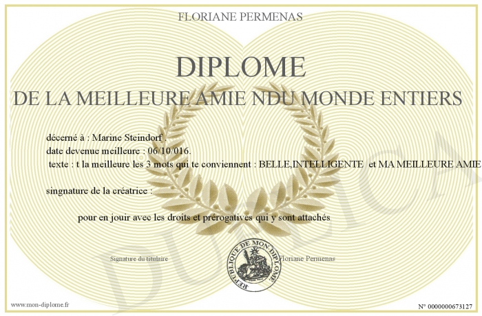 Envoyez par email votre diplome de la meilleure amie ndu monde entiers personalisé