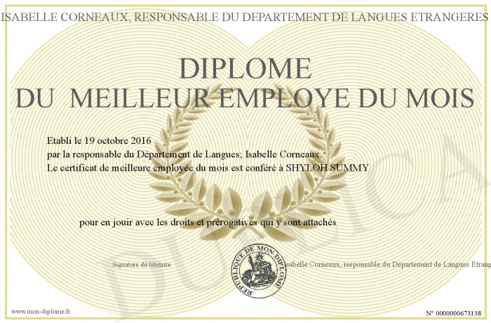 Envoyez par email votre Diplôme du meilleur employé du mois personalisé
