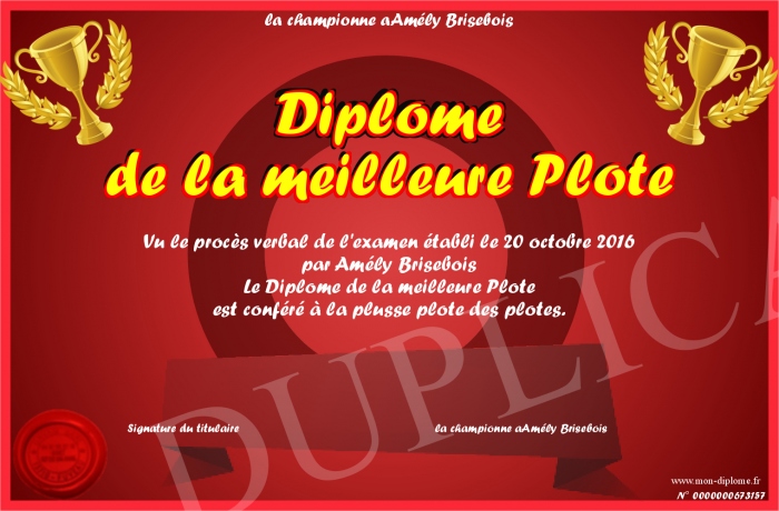 Envoyez par email votre Diplome de la meilleure Plote personalisé