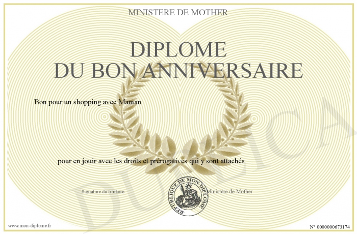Envoyez par email votre Diplôme du Bon Anniversaire personalisé
