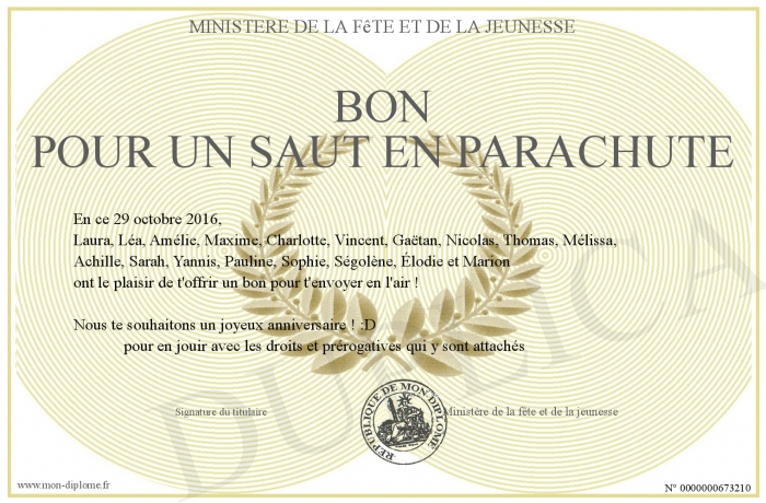 Envoyez par email votre Bon pour un saut en parachute personalisé