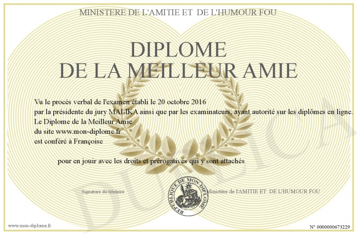 Envoyez par email votre Diplôme de la Meilleur Amie personalisé