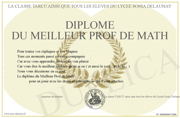 Envoyez par email votre DIPLOME DU MEILLEUR PROF DE MATH personalisé