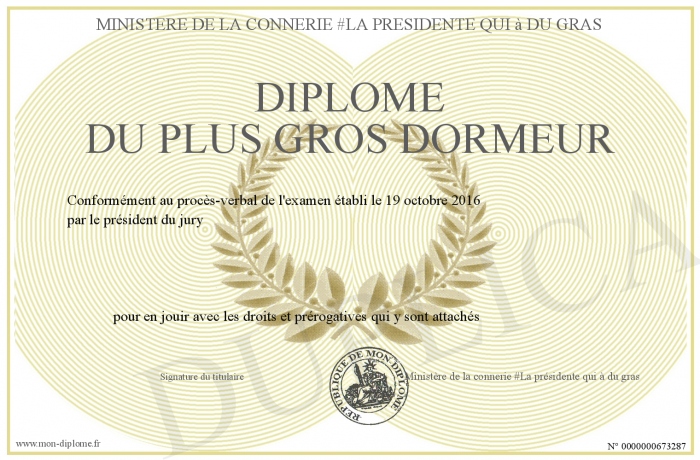 Envoyez par email votre Diplôme du plus gros dormeur personalisé