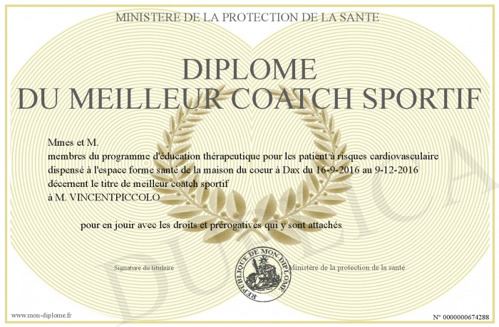 Envoyez par email votre Diplôme du meilleur coatch sportif personalisé