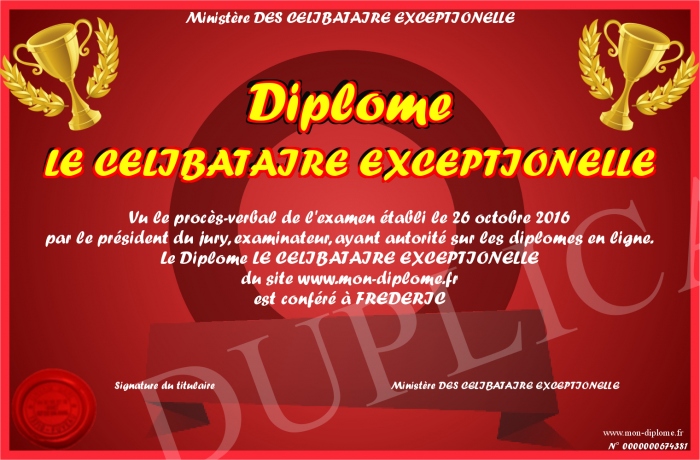 Envoyez par email votre Diplôme LE CELIBATAIRE EXCEPTIONELLE personalisé