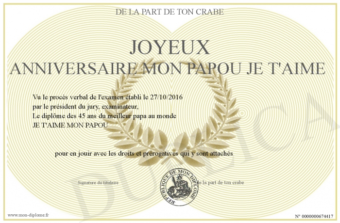 Envoyez par email votre Joyeux anniversaire mon papou je t'aime personalisé