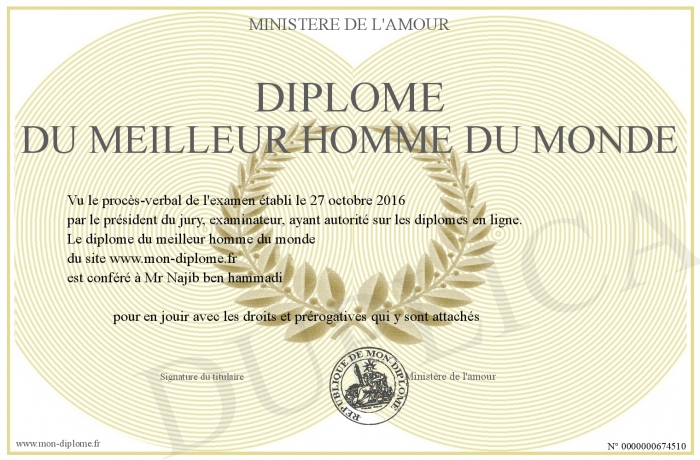 Envoyez par email votre diplome du meilleur homme du monde personalisé