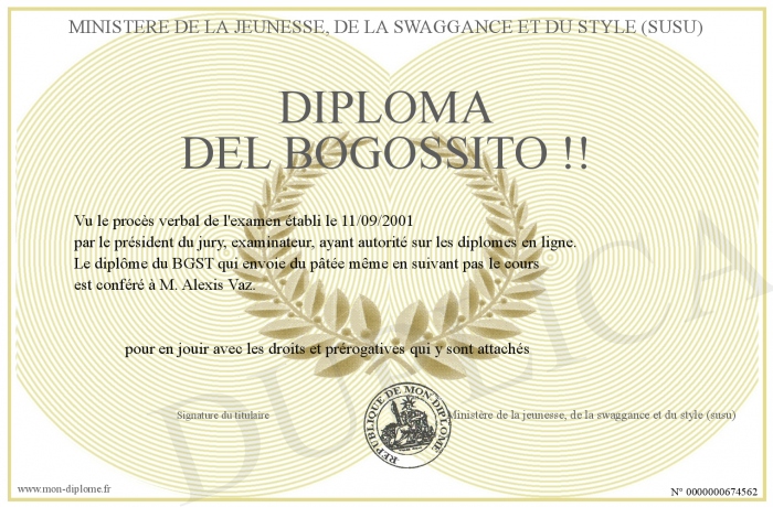 Envoyez par email votre Diploma del Bogossito !! personalisé