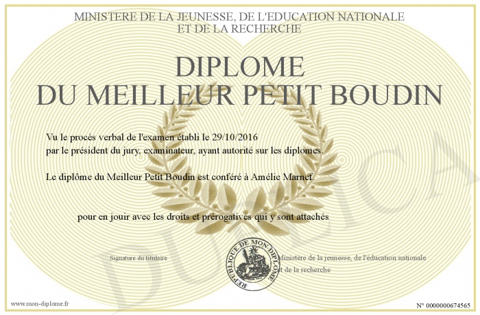 Envoyez par email votre Diplôme du meilleur petit Boudin personalisé