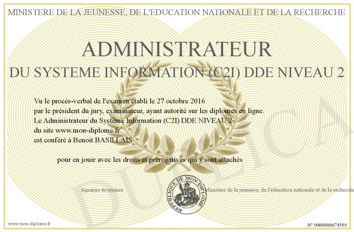 Envoyez par email votre Administrateur du Système Information (C2I) DDE NIVEAU 2 personalisé