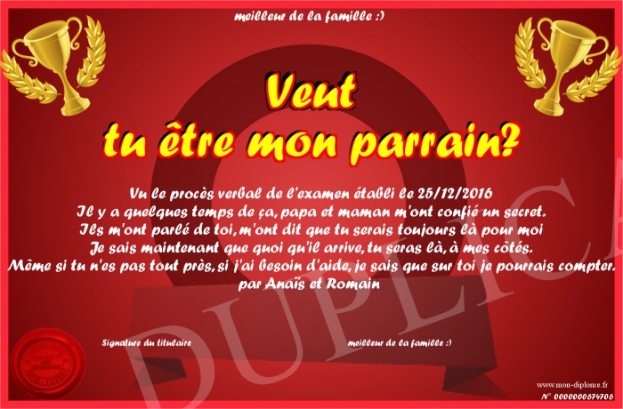 Envoyez par email votre Veut tu être mon parrain? personalisé