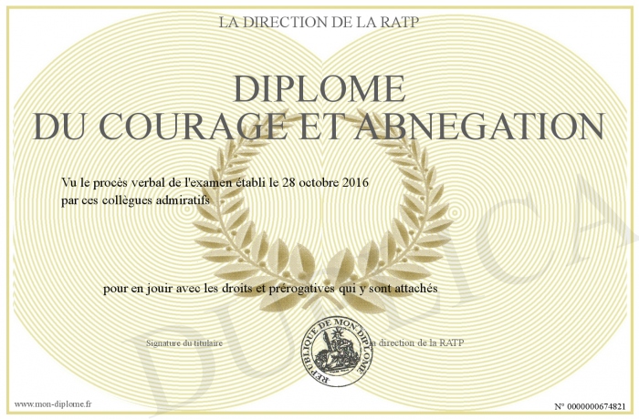 Envoyez par email votre Diplôme du courage et abnégation personalisé