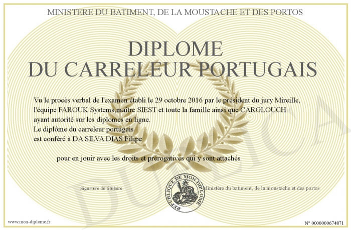 Envoyez par email votre Diplôme du carreleur portugais personalisé