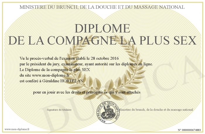 Envoyez par email votre Diplôme de la compagne la plus SEX personalisé
