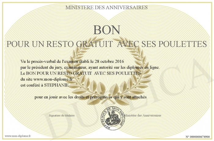 Envoyez par email votre BON POUR UN RESTO GRATUIT AVEC SES POULETTES personalisé