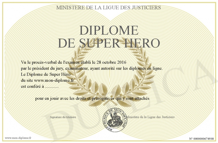 Envoyez par email votre Diplôme de Super Héro personalisé