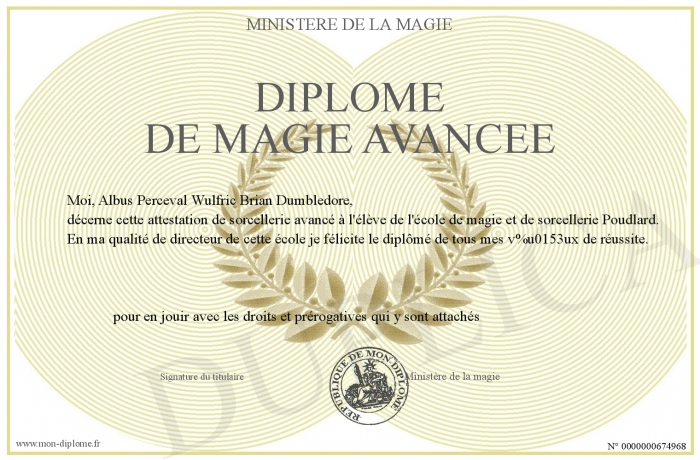 Envoyez par email votre Diplôme de magie avancée personalisé