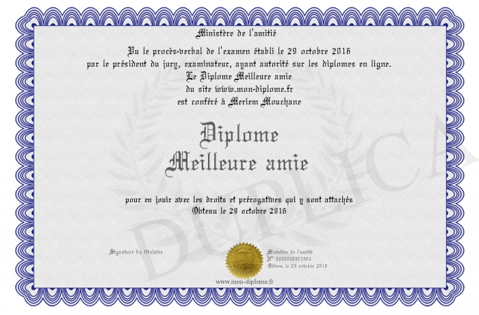 Envoyez par email votre Diplôme Meilleure amie personalisé