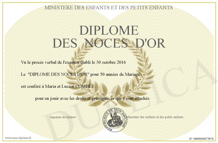 Envoyez par email votre DIPLOME DES NOCES D'OR personalisé