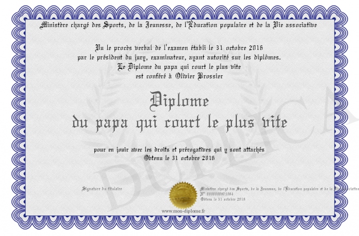 Envoyez par email votre Diplôme du papa qui court le plus vite personalisé
