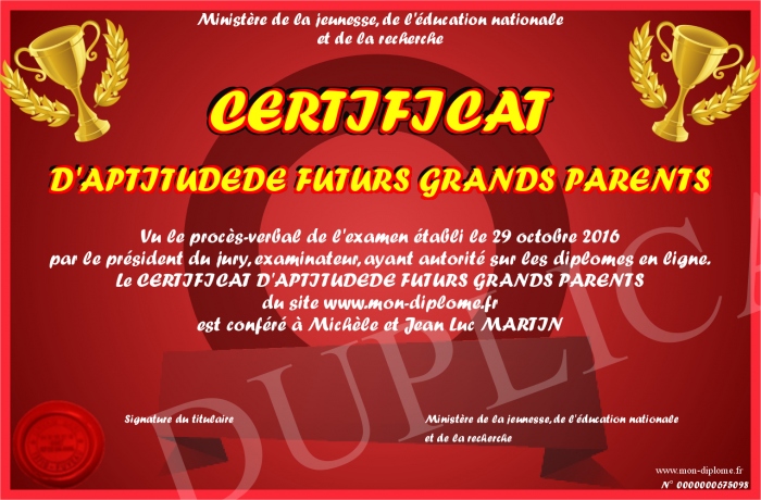 Envoyez par email votre CERTIFICAT D'APTITUDEDE FUTURS GRANDS PARENTS personalisé