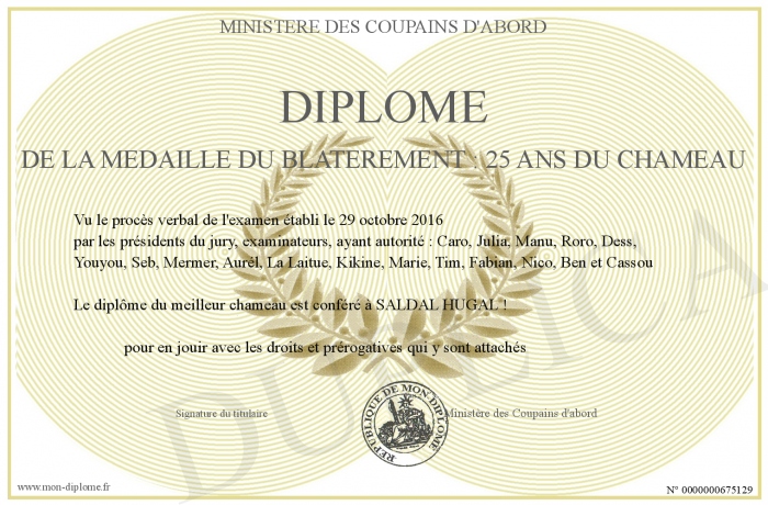 Envoyez par email votre Diplôme de la médaille du blaterement : 25 ans du chameau personalisé