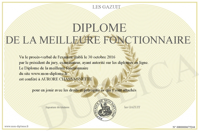 Envoyez par email votre Diplôme de la meilleure fonctionnaire personalisé