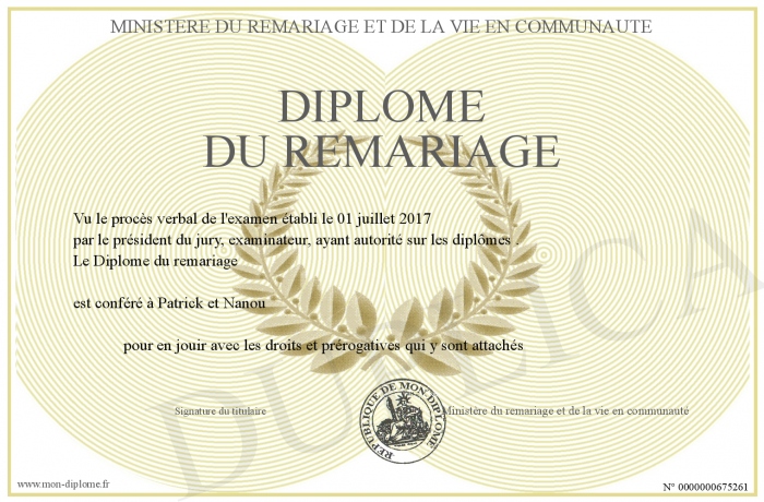 envoyé par le Ministère du remariage et de la vie en communauté !
