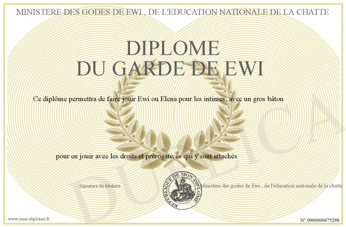Envoyez par email votre Diplôme Du Garde de Ewi personalisé