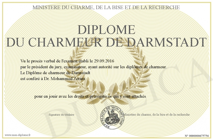 Envoyez par email votre Diplôme du charmeur de Darmstadt personalisé